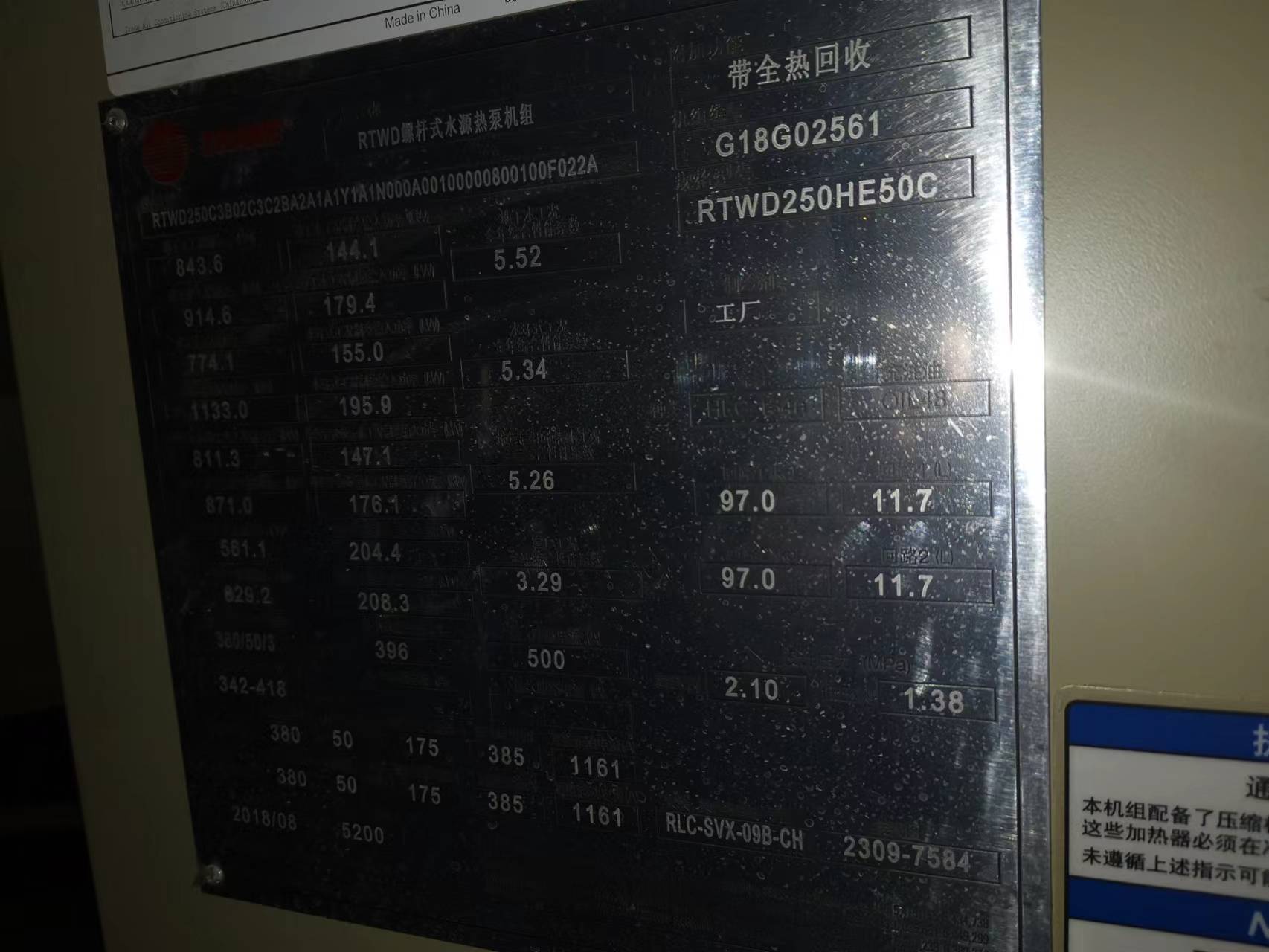 RTWD螺杆式水源热泵(全热回收)机组铭牌6-4-3.jpg